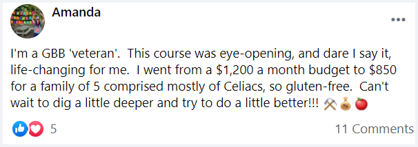 I hope you choose to do something about it, and join the Grocery Budget Bootcamp graduates who are meeting and exceeding their financial goals DESPITE rising food prices!