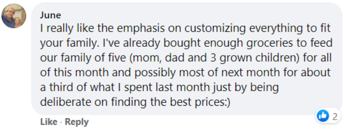 This is the best course on grocery budgeting out there, and the best course (including FPU by Dave Ramsey) I’ve ever taken as an adult. It truly is life-changing!